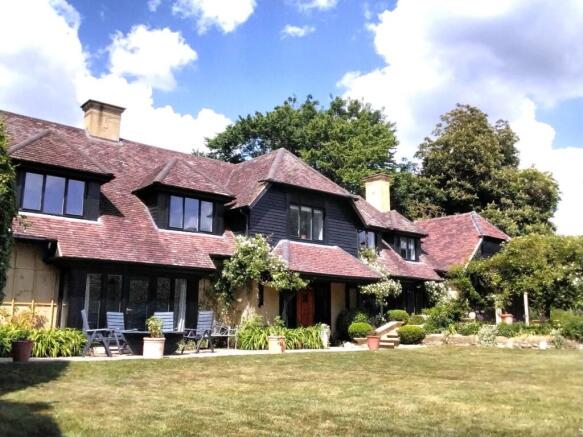 Upon entering the private gated driveway, there is a Japanese-style gatehouse of which neatly disguises its use as a garden utensil and refuse store. Tall beech hedging lines the driveway and provides privacy. The garden is of approximately half an acre, having in the past been part of the grounds and main entrance to the adjacent Rectory. The property enjoys generous grounds to the front, comprising a large manicured lawn, bordered by topiaried hornbeam trees. This south facing lawn extends to some stone steps rising beneath a timber pergola and providing access to an attractive parterre garden area, including a mature willow tree. There is an Arts and Crafts style timber garden shed with leaded glazed windows under a red clay tiled roof.