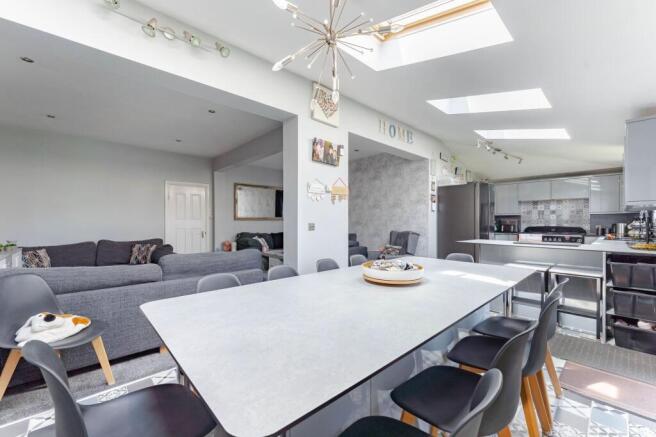 - Generous ground floor layout featuring two reception rooms a games room and a spacious kitchen dining area with garden access