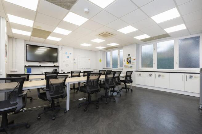 The premises forms the ground floor of a residential block and has been fitted out and partitioned to provide two large offices (one used and fitted as a training suite), a smaller office facing the reception/entrance, kitchen, 2 x WCs and a small reception/seating area.