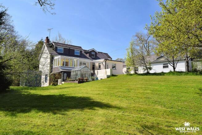 Externally, the house is set back from a minor road, behind a secure galvanised gate and railing, there is a tarmaced parking area to the front for multiple vehicles, a side drive that leads down to the lower ground level and here is a patio and an open storage area under the sunroom perfect for garden machinery and tools. The house sits within an attractive approx 0.9 acre plot, consisting of mildly sloping lawned areas, a variety of mature trees and shrubs, an orchard area and raised planters and a pretty stream boundary offering a scenic view of a historic bridge that once served as part of the original roadway into Cardigan Town!
