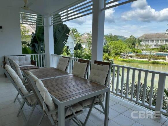Enjoy the ultimate outdoor lifestyle with a spacious decked terrace offering serene views of the sparkling communal pool and tranquil lake?ideal for relaxing or entertaining.