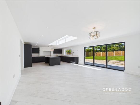 The heart of the home is undoubtedly the voluminous living area which incorporates dining space, seating area and luxury, high quality fitted kitchen with quartz marble worktops, brass sanitary wear, integrated fridge, freezer, dishwasher, washing machine and tumble dryer. Additionally, Bosh double ovens and ceramic induction hob with hidden extractor, large Island/ breakfast bar with integrated wine rack. Bi-fold doors open onto the generous garden patio and bring the light in in from the West facing garden and amazing vaulted sky light.