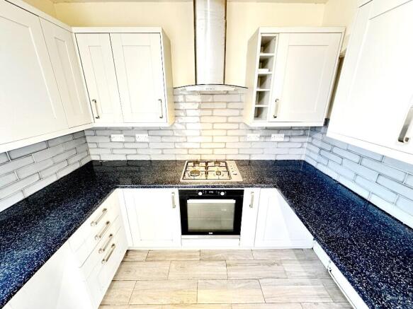 Continuing through, you'll find the modern fitted kitchen, designed to a high standard with a range of integrated and freestanding appliances including a fridge-freezer, oven with gas hob and washing machine. The kitchen also offers plenty of cupboard and worktop space, making it practical for daily use and ideal for those who love to cook. A door at the rear of the kitchen opens directly onto the private rear garden, a well-sized outdoor space that's easy to maintain and ideal for children, outdoor dining, or simply enjoying the sunshine.