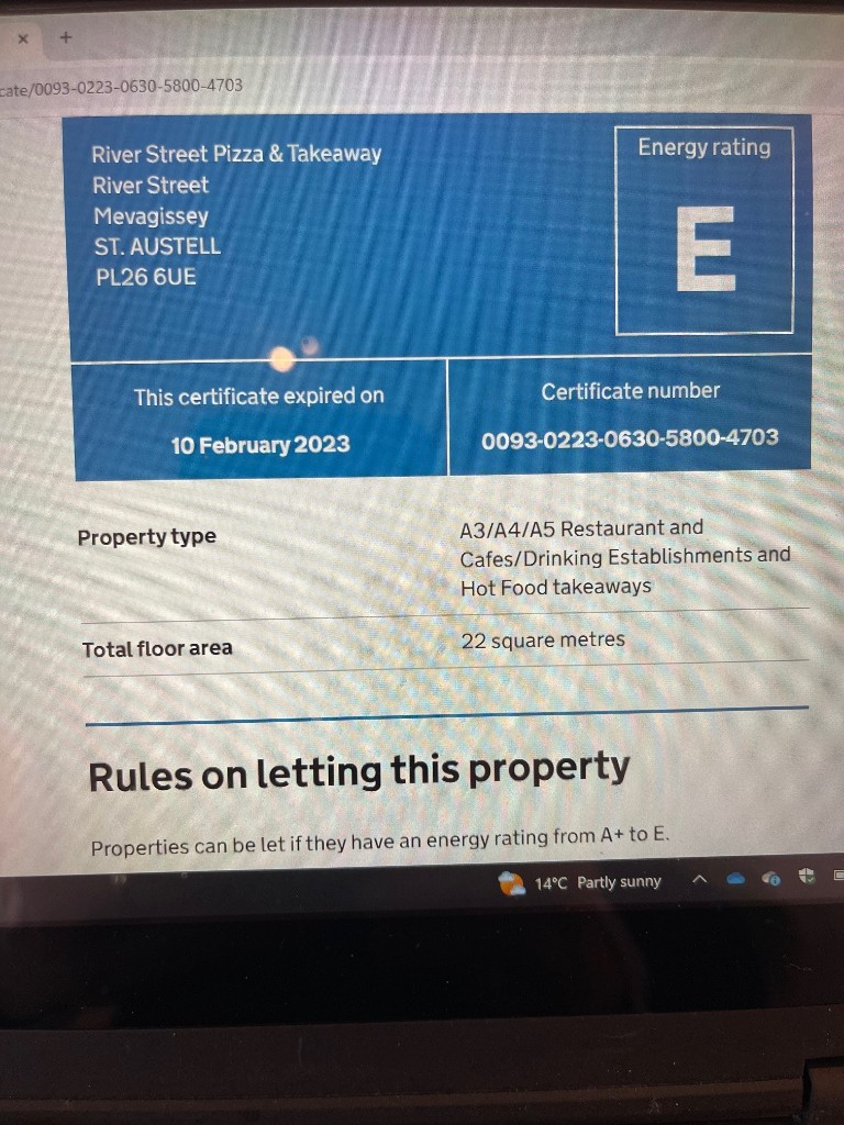 EPC 1Leasehold Takeaway, 2 River Street, PL26 6UE