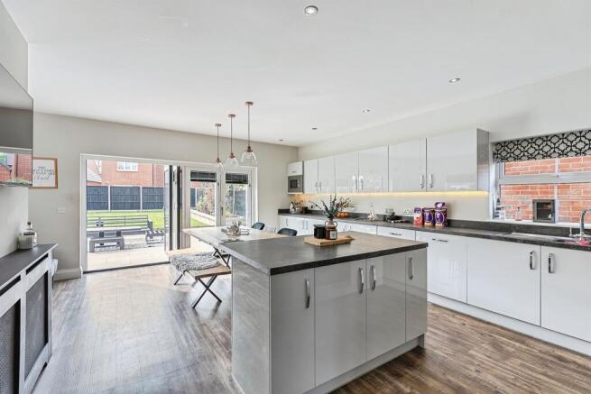 Fitted with a Matching Range of Base and Wall Units with a Generous Separate Island, Windows Either Side and Bi-Folding Doors Leading to the Garden.