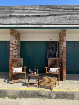 The Beach Hut - 2.06m x 2.36m (6'9" x 7'9") - Lovely secure storage and sitting area opening up to a good size sitting area for alfresco dining. Enjoying panoramic Solent views with a first class seat for the Gurnard sunset.