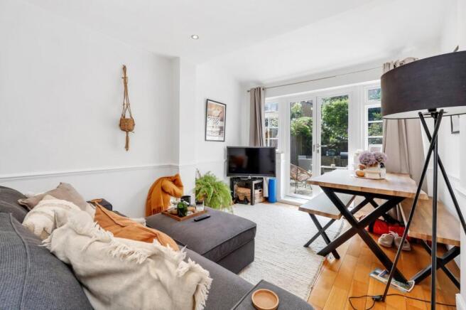 The property comprises a bright and spacious reception room, modern integrated kitchen, and two double bedrooms with storage. There is a large west facing patio garden with side return. Additionally, the property is neutrally decorated throughout and also boasts wooden floors.