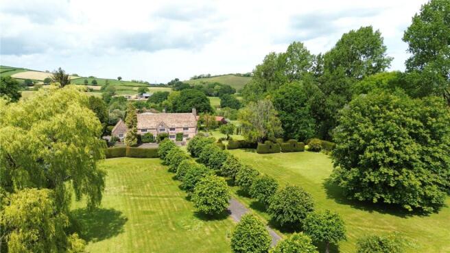 The house is approached via a formal tree-lined driveway, opening to extensive lawns and landscaped Italianate gardens with mature shrubs and trees. A ha-ha and stone retaining wall create a beautiful outlook across the surrounding fields. To the west and north are practical parking areas, garaging and outbuildings, and a further “day-to-day” road entrance. Enclosed courtyards, a former sunken swimming pool (currently used as an ornamental pond) with adjoining linhay, a fern garden and extensive lawns provide a variety of attractive outdoor spaces for relaxation and entertaining.