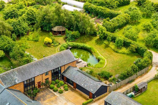 As well as the stable block, there are other outhouses. In the kitchen garden area are three polytunnels, planted with, for example dahlias, lemon grass, figs, and vines. Four full paddocks cover approximately 5.7 acres of land, stretching away from the gardens towards the south west. The closest two paddocks contain two field shelters on skids. Behind these on the left is an area - Little Paddock - just in front of the woods, with a pig house. On the right, and passing around the wood is a third paddock, with an open-sided timber lambing barn with three metal gates across the front. Behind the wood is a final paddock, currently grazed by sheep, which has a notable oak tree with an owl nesting box, and views towards the church spire of Steeple Claydon church. All the paddocks are enclosed by post and rail fencing, most are stock proof, and the external boundaries are dog proof. All the paddocks are surrounded by farmland.
