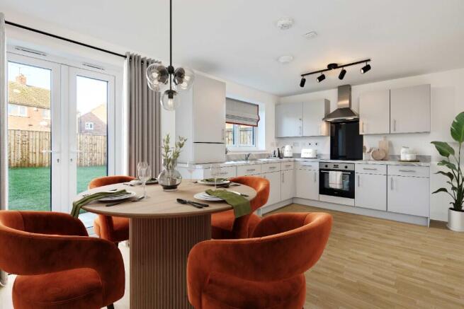 - Open plan kitchen dining room