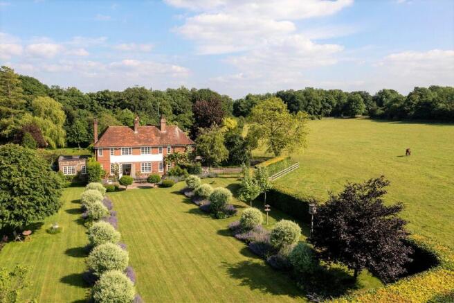 The gardens are fully mature and of particular note is the wonderful flat formal lawn which flows off the main entertaining terrace and is flanked by twin borders punctuated with specimen topiary trees and distinctive mirrored planting schemes. The Croft's own paddocks wrap round two sides of the garden and create a beautiful green environment around the house. At the bottom of the drive there is a charming garden building used as a study and outdoor entertaining space. There is a range of traditional outbuildings and stables, useful for garden machinery and storage. The property is approached off a quiet village lane through metal electric gates via a long drive punctuated by mature trees and smart metal estate fencing demarcating the formal gardens from the outlying pony paddocks.