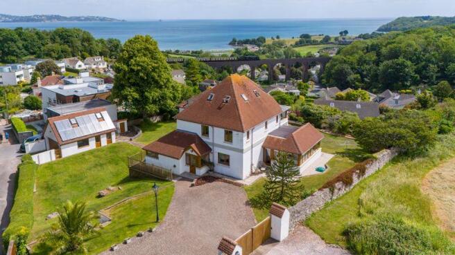 The imposing house is situated on a large plot enjoying stunning views out to sea and the surrounding area of Broadsands taking in Brunels famous steam railway line and viaduct where the Paignton to Dartmouth steam railway runs down to Kingswear.