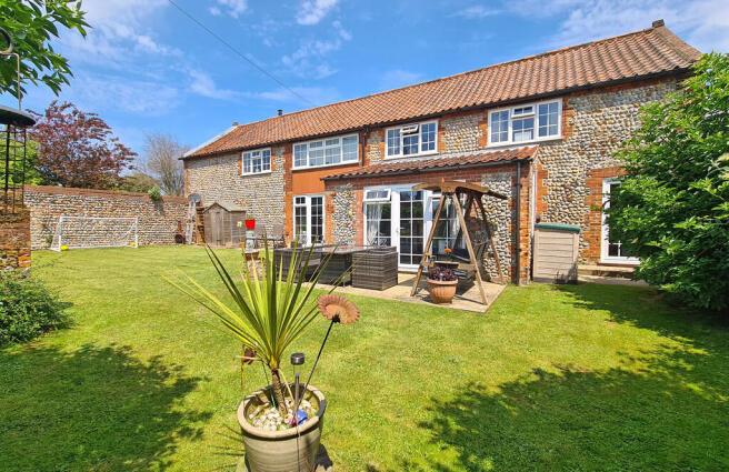 The majority of the garden is located to the front of the barn, enjoying a sunny, southerly aspect, behind high brick and flint walls, which provide a good degree of privacy. The garden has been laid to lawn with a paved patio area, a variety of established shrubs and a timber garden shed.