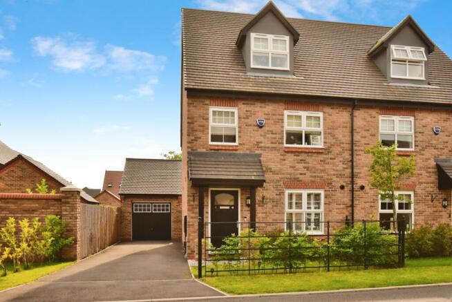 A four bedroom semi-detached property with accommodation arranged over three floors. Still in it's infancy and like new. This property benefits from a sunny garden offering the perfect outdoor space to enjoy and entertain. Please book a viewing to fully appreciate the standard, and level of accommodation this home has to offer. The location is highly regarded, with amenities and schools close-by, and easy access to the A34, and train stations at Wilmslow, and Handforth Village. Built by Taylor Wimpey in 2022, The accommodation comprises- entrance, downstairs toilet. a stylish kitchen with high quality appliances. The lounge/ diner is positioned to the rear overlooking the garden with French doors. Upstairs on the first floor, a spacious landing provides access to bedroom 2/3 and 4. The family bathroom is fully tiled with a 3 piece suite. The top floor offers a principle bedroom suite. En-suite shower room. Outside, the driveway provides parking for two cars and access to the garage. The rear garden turfed with a patio, and is enclosed. PLEASE CALL TO ARRANGE YOUR ACCOMPANIED VIEWING)..
