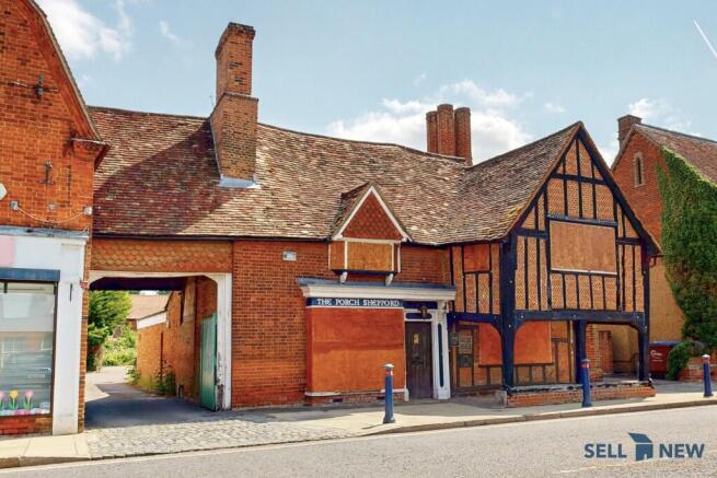 - Character features include jettied upper storey and timber-framed frontage