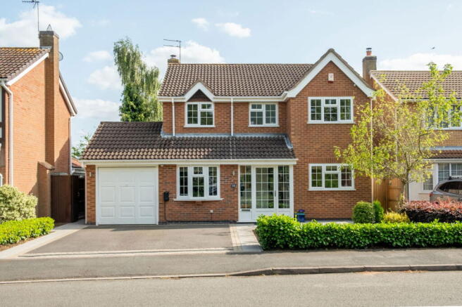 The first-floor features four bedrooms, with the main bedroom offering an ensuite, along with a family bathroom. Outside, a generous driveway leads to a garage, and there is a glorious south-facing rear garden.