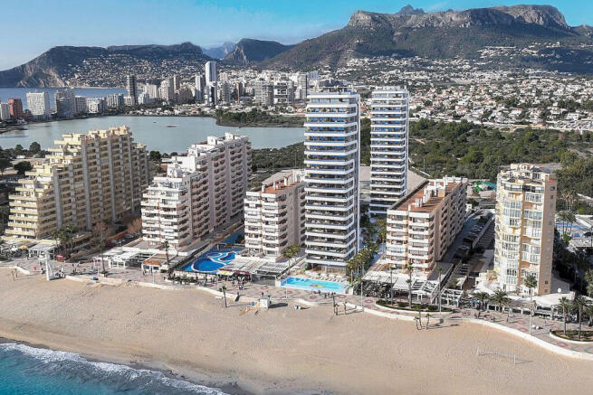 Azure Icons is situated on the beachfront of La Fossa in Calpe, with two pedestrian entrances, one via Avenida Juan Carlos I and another from the beachfront promenade of La Fossa. Calpe is one of the favorite destinations in the Valencian Community thanks to its beaches, services, sports offerings, gastronomy, and leisure… Calpe's historic centre is known for its narrow streets and traditional houses. Near the port are the Roman ruins of the Queen's Baths, where you can swim among archaeological sites. Additionally, you can taste the local and international cuisine with the wide range of bars, restaurants and terraces in Calpe and its surroundings like Altea or Moraira. Alicante Airport is 77 km (approx. 1 hour).