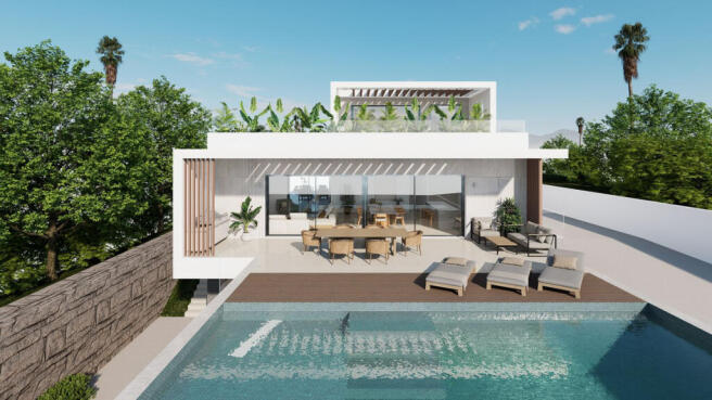 An independent, energy-efficient luxury villa with beautiful sea views. A unique contemporary design, featuring the highest quality fittings to ensure functionality and optimum comfort. The floor-to-ceiling, energy-efficient windows allow you to enjoy the beautiful sea views and abundant sunlight in all bedrooms and the spacious, open-plan living room.