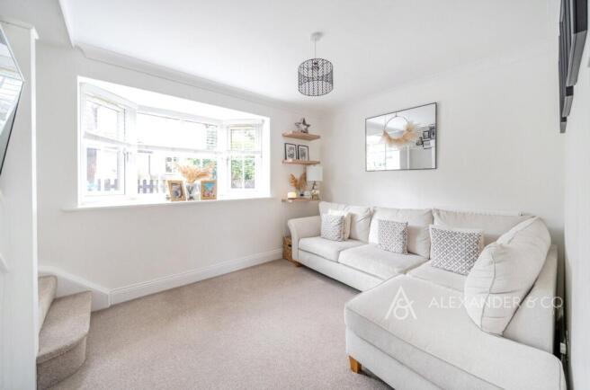 The inviting lounge features new carpet and a large bay window allowing ample natural light. A staircase leads to the first floor, where you’ll find two well-proportioned double bedrooms. The principal bedroom boasts space for wardrobes, while the second double room provides versatility.