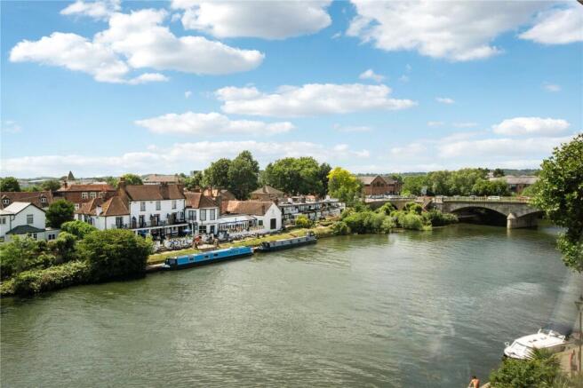 This first floor apartment is set within the central Staines Conservation Area and provides generous accommodation arranged over three levels. The lower floor includes a well-proportioned kitchen and hallway leading to the main reception room, opening onto a good-sized, sunny, riverside balcony. The mezzanine level offers a second bedroom with built-in storage, family bathroom and airing cupboard. The top level features the spacious principal bedroom with river views, walk-in wardrobe and ensuite shower room.