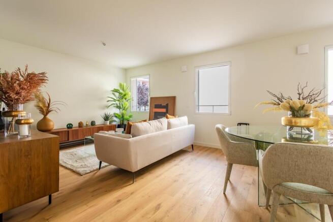 Upon entering, you are welcomed by a spacious LIVING ROOM of 25 sqm, west-facing, with three large windows.