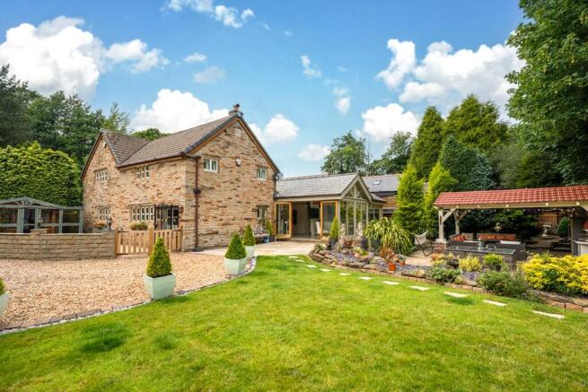 Externally, the property truly excels. The rear garden has been lovingly landscaped and designed for entertaining and relaxation. A large patio area leads from the oak-framed garden room, providing space for dining and lounging. A beautiful, raised koi pond with waterfall feature forms a tranquil centrepiece, surrounded by mature planting and meandering gravel pathways.