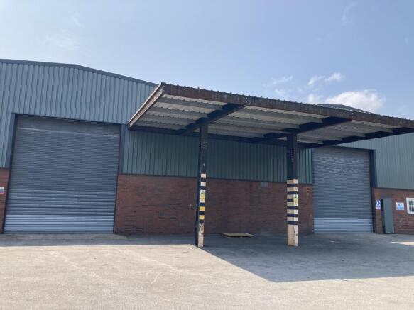 The unit has an eaves height of approximately 6.5 m and benefits from useful forecourt and side yard for full commercial vehicle access.