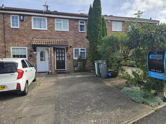 Outside Front - Car hardstanding and a range of mature trees and shrubs to side.