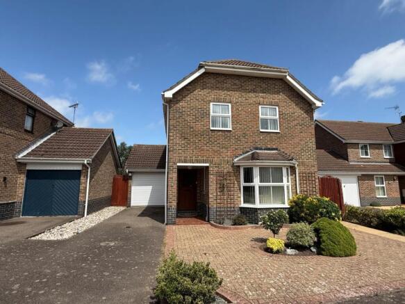 Open plan with brick block frontage and flower borders. Tarmac drive leading to garage.