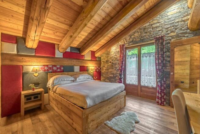 On the first floor there are 3 rooms with balcony and a three-bedroom apartment, furnished in "Alpine Chic" style that combines traditional mountain furniture materials - solid wood, natural stone, warm fabrics - with clean lines, sober finishes and contemporary design details. The rooms are welcoming and elegant.