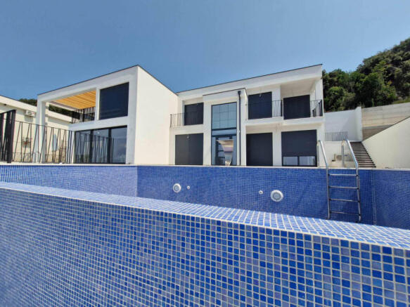 This villa spans 215 m² across two floors and is set on a landscaped plot of approximately 500 m². Only 100 meters from the sea, it offers stunning views, with the main beach 900 meters away and a smaller beach just 300 meters from the property.