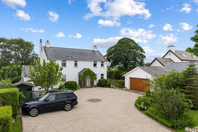 Stone walled entrance leading to large gravelled driveway with extensive parking for several vehicles. Electric vehicle charging point. Well maintained from garden with mature planting, shrubs and trees. Garden Shed. The rear garden has uninterruped views over open countryside to the hills in the distance. Well presented lawns and manicured hedges and shrubs. Greenhouse. Decking area for entertaining.