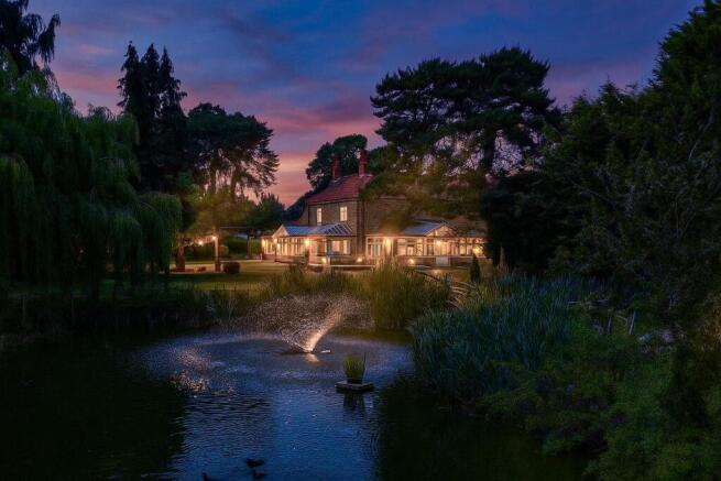 The lawned rear garden itself extends to almost 0.33 of an acre and offers a wonderful blend of formal landscaping and playful, lifestyle features that include an outdoor kitchen with pizza oven, The Love Nest with a wood burning stove, 2 cozy garden retreats in The Boat House and The Cottage and The Tiki Bar with a viewing platform overlooking one of the ponds as well as being the base camp before climbing a rope ladder up to a zip wire.