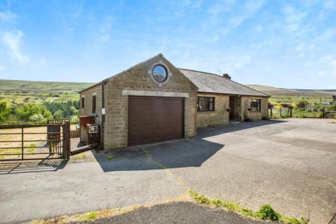 A spectacular 3 bedroom detached true bungalow, which sits in an elevated position in approximately 3/4 acre of gardens, in a semi-rural location, that offers panoramic vistas across open countryside and reservoir. Briefly comprising an entrance porch, hallway, a good size lounge, huge kitchen diner, conservatory, 3 double bedrooms, 1 of which benefits from an en-suite shower room and a family bathroom. The property is in need of some renovation and priced to reflect this. Externally the property boasts a large electric gated driveway and a double garage.