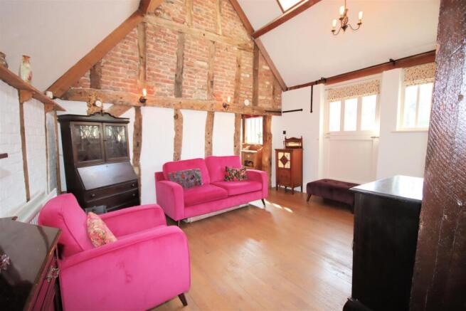 Living Room - 4.42m x 3.81m (14'6" x 12'6") - Sealed unit double glazed window to front, double radiator, wooden flooring, telephone point, TV point, telephone point(s), TV point(s), double power point(s), Exposed original beams to the vaulted ceiling and exposed beams to the walls, half glazed stable door to front, opening to inner hallway.