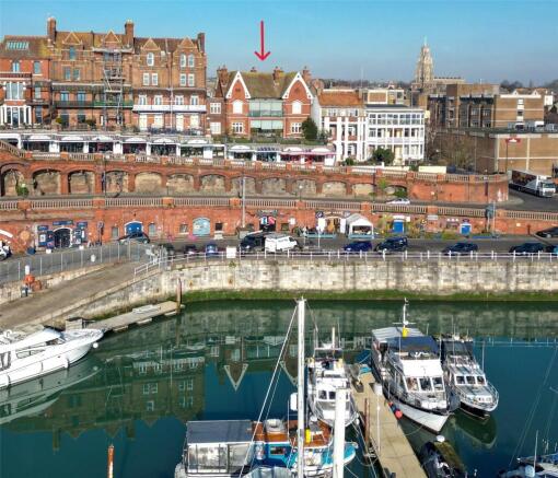 - First floor conservatory overlooking the Royal Harbour, floor to ceiling sliding windows leading out onto decked balcony with glass balustrade