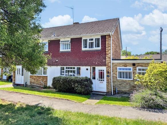 Outside - A well-defined rear garden, privately enclosed and framed by established planting. A central lawn offers simplicity, bordered by shrubs for natural structure. The shingled seating area introduces a practical spot to unwind, while the garage and driveway are neatly connected via a side door.