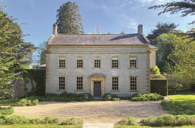 The Yews is a truly fascinating and beautiful old house and is worthy of its Grade II* Listing. A manor house, gardens and orchards have stood on the site for well over 500 years and for centuries it was the principal house of the village. At the core of the house is the old medieval manor, with the beamed ceilings of the period. In the mid-18th century the handsome five bay entrance facade was built in finely cut Blue Lias stone with hamstone dressings and quoins. In the 19th century a splendid ballroom was built above which there is a well proportioned and light bedroom with en-suite bathroom and balconies overlooking the gardens. In typical truly symmetrical style, the front portico has a panelled front door leading into a fine reception hall with beautiful turning staircase which leads to the top of the house and is lit by a recently refurbished timber framed lantern. A drawing room has a plain stone fireplace with a Jotul wood burning stove, sash windows to the front of the house with original shutters, a corniced ceiling and a recessed bookcase. A library is found on the opposite side of the hall with a cut stone fireplace with open grate, handsome bookcase with cupboards and a ceiling cornice. The dining room, found in the centre of the house, has a fireplace with a high stone mantelpiece. A small lobby is found off the dining room and has a door out to the rear of the property, and a panelled door leads into the ballroom. A quite magnificent reception room with carved oak fireplace, exquisite ceiling cornice, an arched top window and French doors leading out to the loggia with mature grape vine and jasmine. The kitchen has a range of panelled fronted cabinets with marble work surfaces with wall mounted shelves, Classic double china sink, and a wood burning Esse cooker with a module providing electric four ring hob and two ovens. A door from the kitchen leads out into the rear hall/boot room with flagstone floor, coat hooks and door to the cloakroom with high flush wc and excellent pantry/utility with ample shelving.