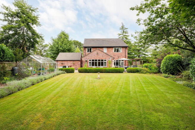 The gardens extend around the property, with the rear garden being a particular highlight, enclosed by mature tree lined boundaries that frame the meticulously landscaped gardens, and a charming wild flower garden which extends to the side of the house.