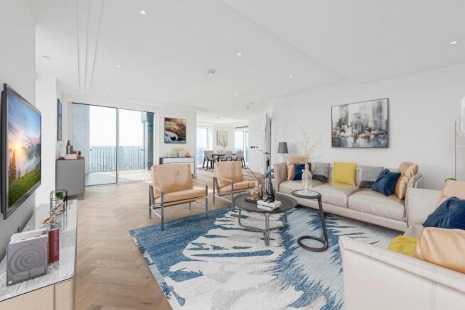 Occupying the 29th and 30th floors of The Kings Tower at Chelsea Creek, this spectacular duplex penthouse offers over 2147sqft (199sqm) of luxury living with breath-taking views across London.