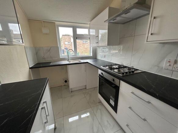 Refitted kitchen, window to front aspect, electric oven and gas hob, heater, extractor fan, plumbing for a washing machine, stainless steel sink and drainer.