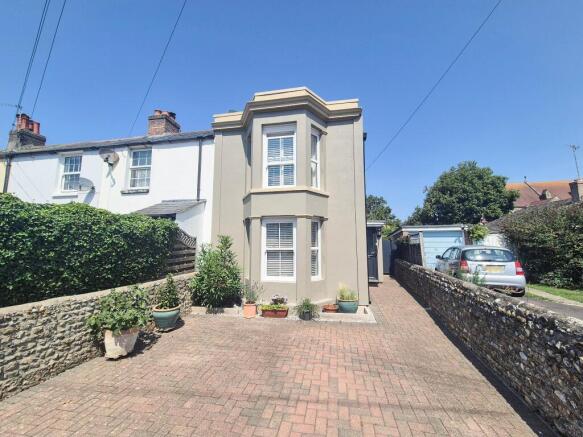 To the front of the property there is a brick paved driveway providing off street parking with attractive flint walling, side gate leading to