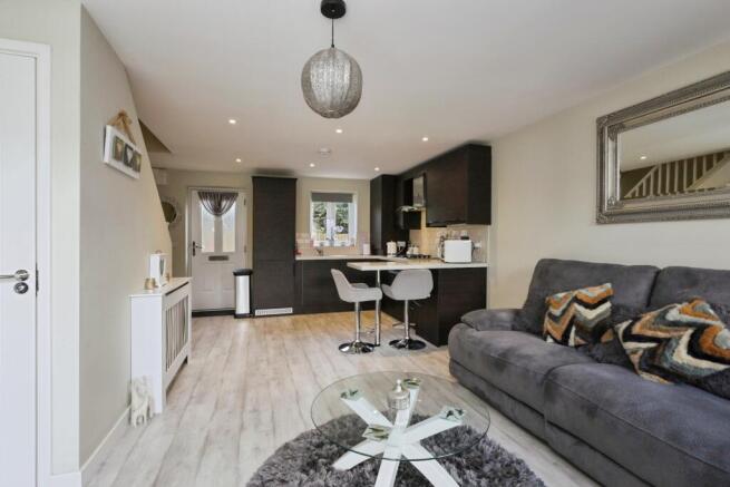 The property opens into the impressive open plan design on the ground floor, measuring approximately 20x14ft and comprising of a high quality fitted kitchen with integrated appliances and living area which enjoys a rear garden outlook and access. The convenient downstairs WC is situated off the living area under the stairs.