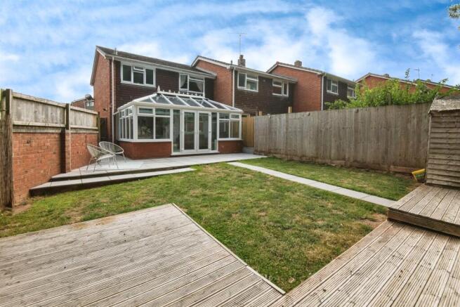The rear garden is a great size and fully enclosed. Mainly laid to lawn, patio and a decked area. Garden shed, side gate.
