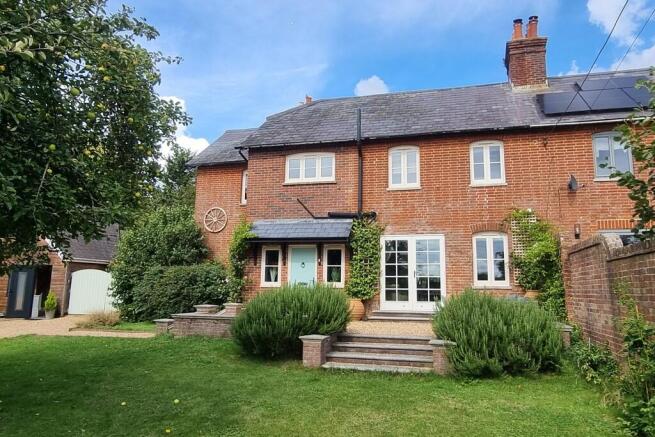 ENTRANCE Pedestrian gate and twin wooden gates with brick pillars leading to large shingle driveway with flowering borders to one side and high hedge to the other, to right is a lawned garden enclosed by a mature hedge with hidden plinth and Calor gas cylinder and underground cesspit tank, central to the lawn is a mature tree and dividing party brick retaining wall with adjacent property, to the left hand side of the property is twin arched topped gateway providing further vehicular access to the rear garden with pillared entrance, wood fender borders and shingle pathway with steps leading up to a raised shingled area with steps leading down to garden. Main front door leading to porch and further steps with twin doors leading to sitting room.