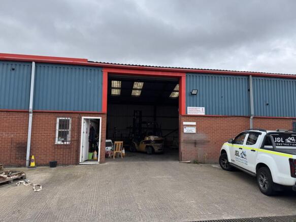 The property is accessed by way of pedestrian and full height roller shutter doors and has car parking provisions at the front elevation within a shared forecourt.