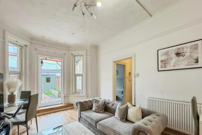 Spacious two-bedroom ground floor apartment with private entrance and rear garden, offered with no forward chain. Features high ceilings, bay windows, modern kitchen and bathroom. Close to shops, amenities and transport links.