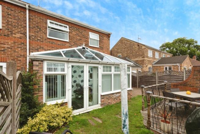 Modern conservatory with tiled flooring and a wraparound windows, creating a bright and airy space. French doors open out to the rear garden, making it the perfect spot to enjoy the outdoors from the comfort ofc inside.