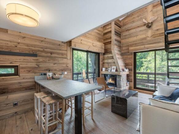 Located in the sought-after Rochebrune area, just minutes from the center of Megève and the slopes, this welcoming apartment on the first floor of a well-maintained building presents an excellent opportunity for a second home or rental investment. With a living area of 55.22 sqm (Carrez Law) and a total area of 64.18 sqm, it comprises a welcoming living space with a lounge, fireplace, and fully equipped kitchen, all extending onto a west-facing L-shaped terrace, ideal for enjoying sunny days in a peaceful, leafy setting. The sleeping area includes three bedrooms: a children's bedroom with two bunk beds and an en-suite shower room, a double bedroom with access to the southwest-facing terrace and a private bathroom, and a third bedroom on a mezzanine level. An entrance hall with a separate WC completes this functional layout. The apartment is sold with a large cellar and a parking space in an underground garage, offering everyday comfort and convenience. A property perfectly suited to mountain living, combining authenticity and comfort, in a prestigious residence with a swimming pool.