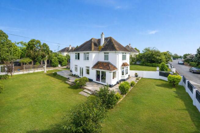This imposing five-bedroom detached home stands proudly on a generous, level plot and is offered with no onward chain. Step through the front door into a welcoming entrance hall with oak flooring and a grand staircase. The spacious living room enjoys triple-aspect windows, filling the space with natural light, and flows through to a sun lounge opening onto the garden. A separate dining/entertaining room with French doors is ideal for family gatherings or social occasions. The well-appointed kitchen features granite work surfaces, a central island, range-style cooker, and direct access to the garden, with a utility room conveniently adjoining. A modern ground-floor shower room completes the layout.